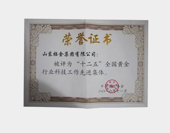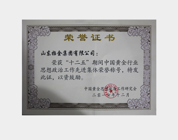 “十二五”期間中國(guó)黃金行業(yè)思想政治工作先進(jìn)集體榮譽(yù)稱(chēng)號(hào)