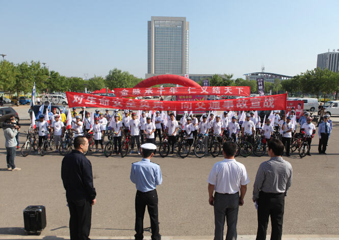 隨著一聲“出發(fā)”令下,50余名身穿白色公益騎行服的青年志愿者同時跨上單車,依次駛?cè)腧T行道。途經(jīng)溫泉路、羅峰路、國大路、招辛快線,最終到達(dá)目的招金教育產(chǎn)業(yè)。一路上,在交警引導(dǎo)車的帶領(lǐng)下,按照方隊順序行進(jìn),一面面迎風(fēng)飄揚的旗幟,一輛輛滿載快樂的自行車,著裝統(tǒng)一、自動成排,形成了一道靚麗的風(fēng)景線,吸引了眾多路人的目光,起到了宣傳交通安全、宣傳招金銀樓的良好效果?;顒悠陂g,在招金教育產(chǎn)業(yè)園門前舉行了慢騎等小活動,騎行人員踴躍參與,氣氛非?;钴S?;顒咏Y(jié)束后,騎行人員順利返程。