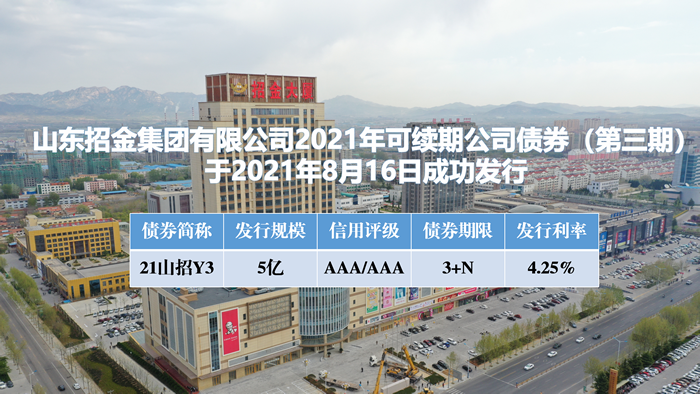 8月16日,山東招金集團有限公司成功發(fā)行5億元可續(xù)期公司債券。本次票據(jù)發(fā)行票面年化利率4.25%,較中長期貸款LPR4.65%低40BP。
