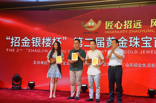 2018年8月29日晚,由中國(guó)珠寶玉石首飾行業(yè)協(xié)會(huì)、中國(guó)黃金協(xié)會(huì)、山東招金集團(tuán)有限公司主辦,山東招金銀樓有限公司承辦的“招金銀樓杯”第二屆黃金珠寶首飾設(shè)計(jì)大賽頒獎(jiǎng)典禮在招金舜和國(guó)際飯店舉行,共揭曉了一等獎(jiǎng)、二等獎(jiǎng)、三等獎(jiǎng)、賀歲黃金獎(jiǎng)等獎(jiǎng)項(xiàng)。