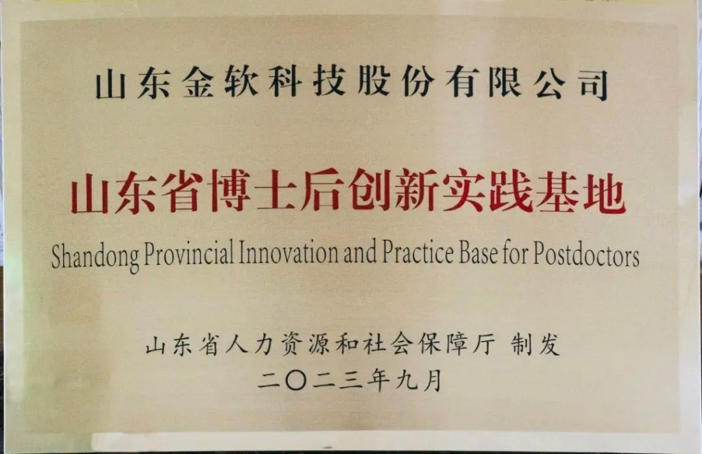 近日,山東省人力資源和社會保障廳公布第九批(2023年)山東省博士后創(chuàng)新實踐基地認定名單,金軟科技憑借在科技研發(fā)、管理創(chuàng)新、人才引進等方面的顯著成果,成功獲批入選成為山東省博士后創(chuàng)新實踐基地。