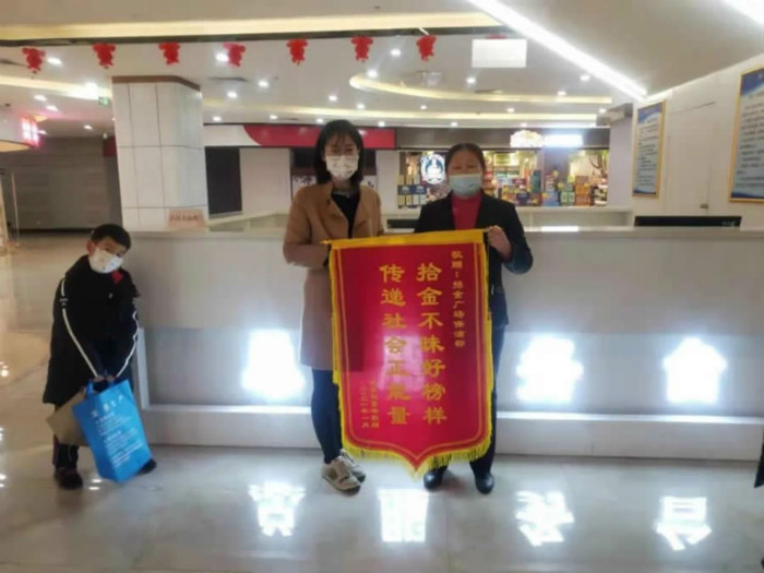 2021年1月26日,馬女士將一面寫著“拾金不昧好榜樣,傳遞社會(huì)正能量”字樣的錦旗送到了招金廣場(chǎng),贊揚(yáng)招金人拾金不昧的精神。原來,前段時(shí)間招遠(yuǎn)市突降大雪,招金廣場(chǎng)工作人員溫雪蓮在清掃南廣場(chǎng)積雪時(shí),撿到了一部?jī)r(jià)值近萬元的手機(jī),隨后馬上主動(dòng)上交給公司。為方便失主聯(lián)系,工作人員一直給手機(jī)充電,確保手機(jī)通暢,當(dāng)晚失主便通過手機(jī)聯(lián)系到招金廣場(chǎng),經(jīng)確認(rèn)后,手機(jī)完璧歸趙。