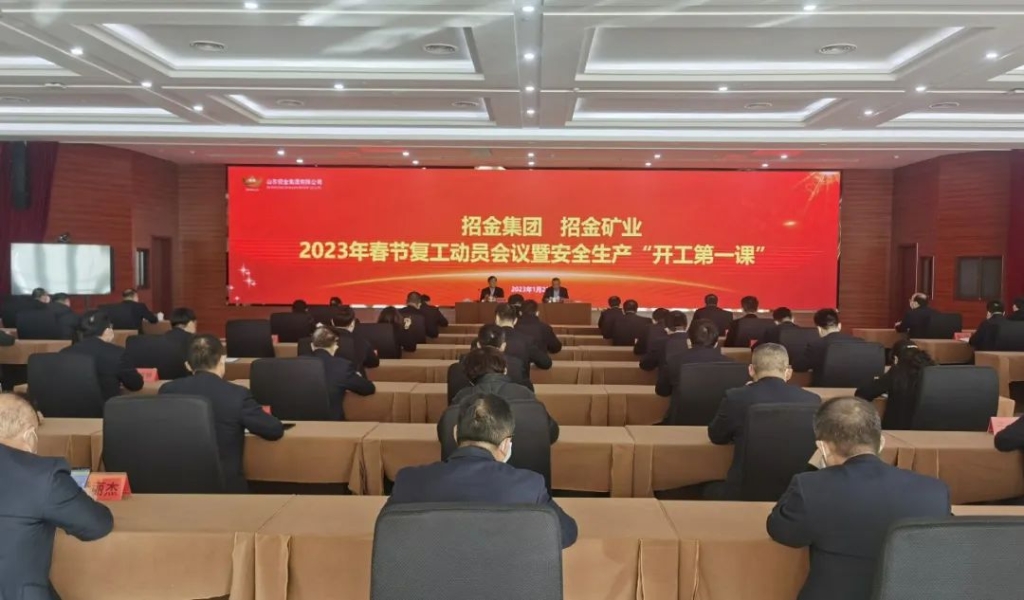 1月28日,招金集團(tuán)召開(kāi)2023年春節(jié)復(fù)工動(dòng)員會(huì)議暨安全生產(chǎn)“開(kāi)工第一課”。會(huì)議圍繞貫徹落實(shí)集團(tuán)公司2023年會(huì)精神,安排部署了節(jié)后復(fù)工復(fù)產(chǎn)、安全生產(chǎn)重點(diǎn)工作,號(hào)召總部機(jī)關(guān)全體干部職工迅速收心歸位進(jìn)入狀態(tài),全力推動(dòng)集團(tuán)公司生產(chǎn)經(jīng)營(yíng)實(shí)現(xiàn)首季開(kāi)門(mén)紅。