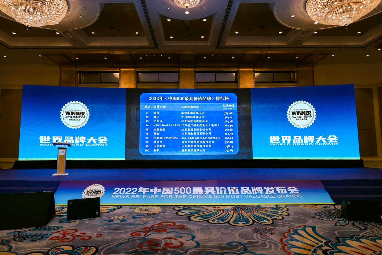 2022年中國500最具價值品牌榜單發(fā)布——招金集團以760.39億元品牌價值位列第96位