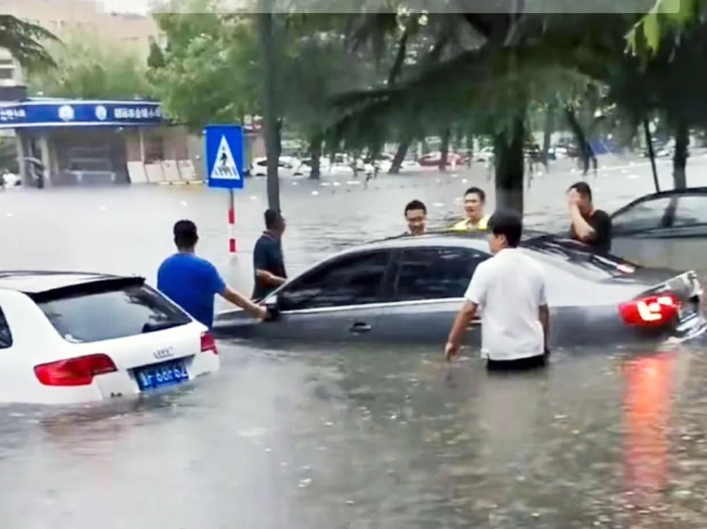 6月28日,招遠(yuǎn)突降暴雨,短時(shí)間內(nèi)造成部分區(qū)域積水嚴(yán)重,一位黃衣大哥在回家途中,路經(jīng)魁星路與初山路交界